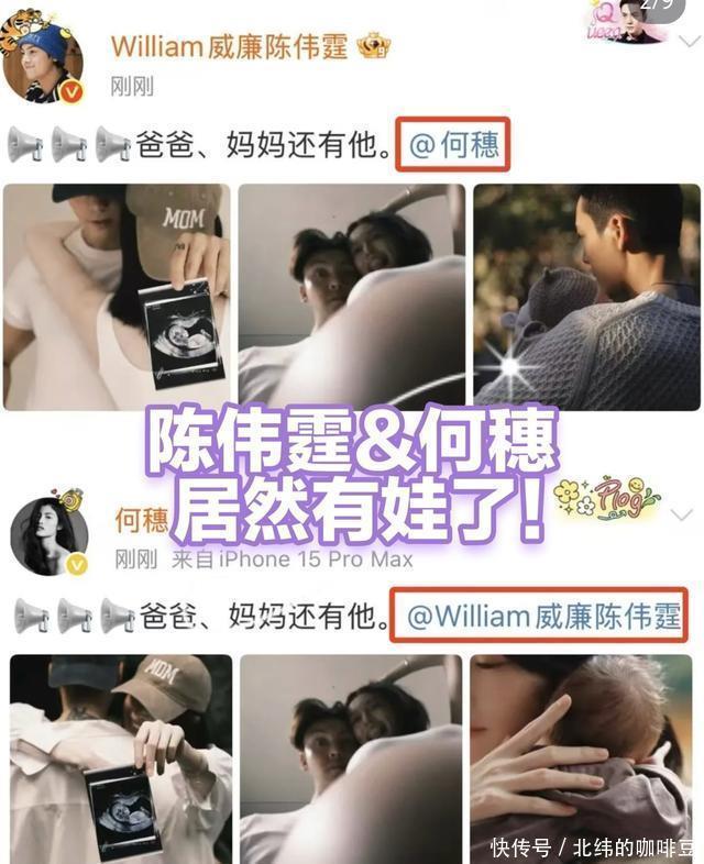今天上午同时,陈伟霆和何穗同步官宣生娃喜讯。 文案一模一样,只有简简单单七个字: “爸爸、妈妈还有他。”