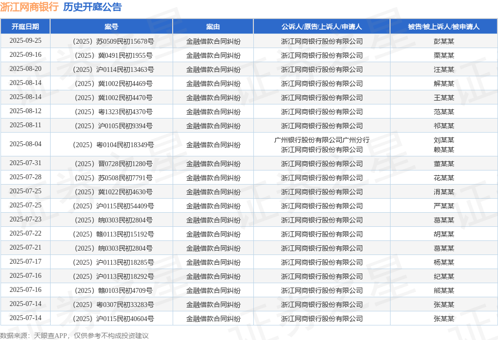 本站消息财盈策略,根据天眼查APP显示,近日公布了一则浙江网商银行股份有限公司作为原告/上诉人的开庭公告,详细内容如下: